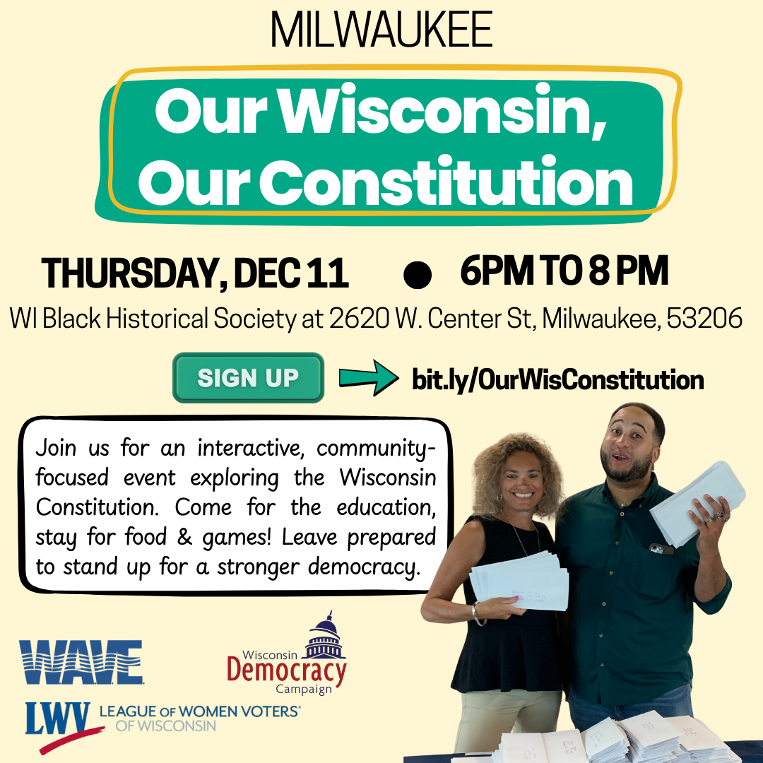 If you are in the Milwaukee area, join us for an interactive community focused event exploring the Wisconsin Constitution.