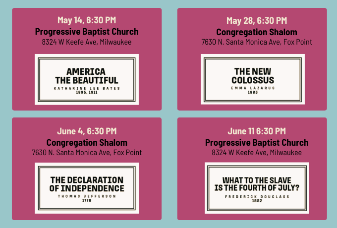 You are invited to join the conversation in-person in Milwaukee or Appleton or virtually via Zoom. Each gathering will focus on one or two texts and will offer the opportunity for fellowship and dialogue. Join your community to gather, learn, and reflect!